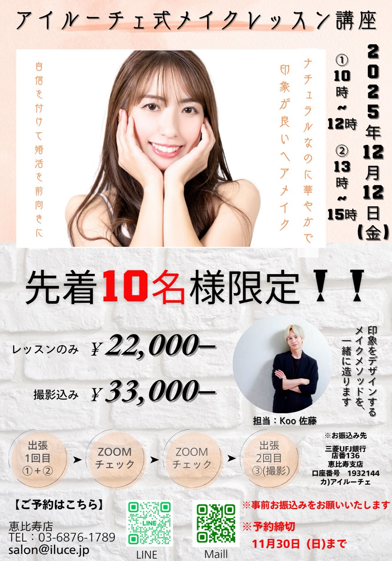 本日は【会員様向けメイクレッスン+撮影会のご案内】です。