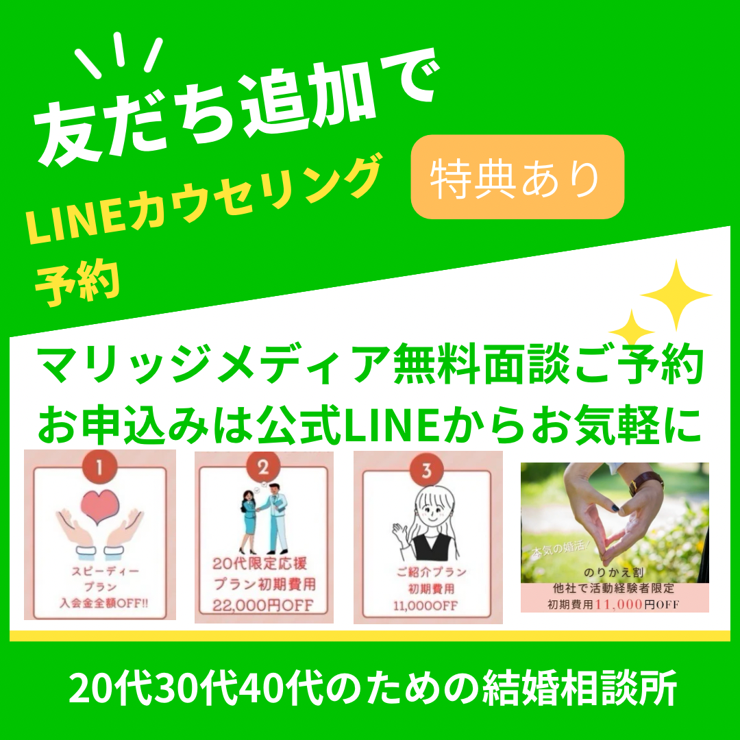 【マリッジメディア公式サイト毎月3名予約限定♡ご入会割引特典でお得に賢く婚活スタート】