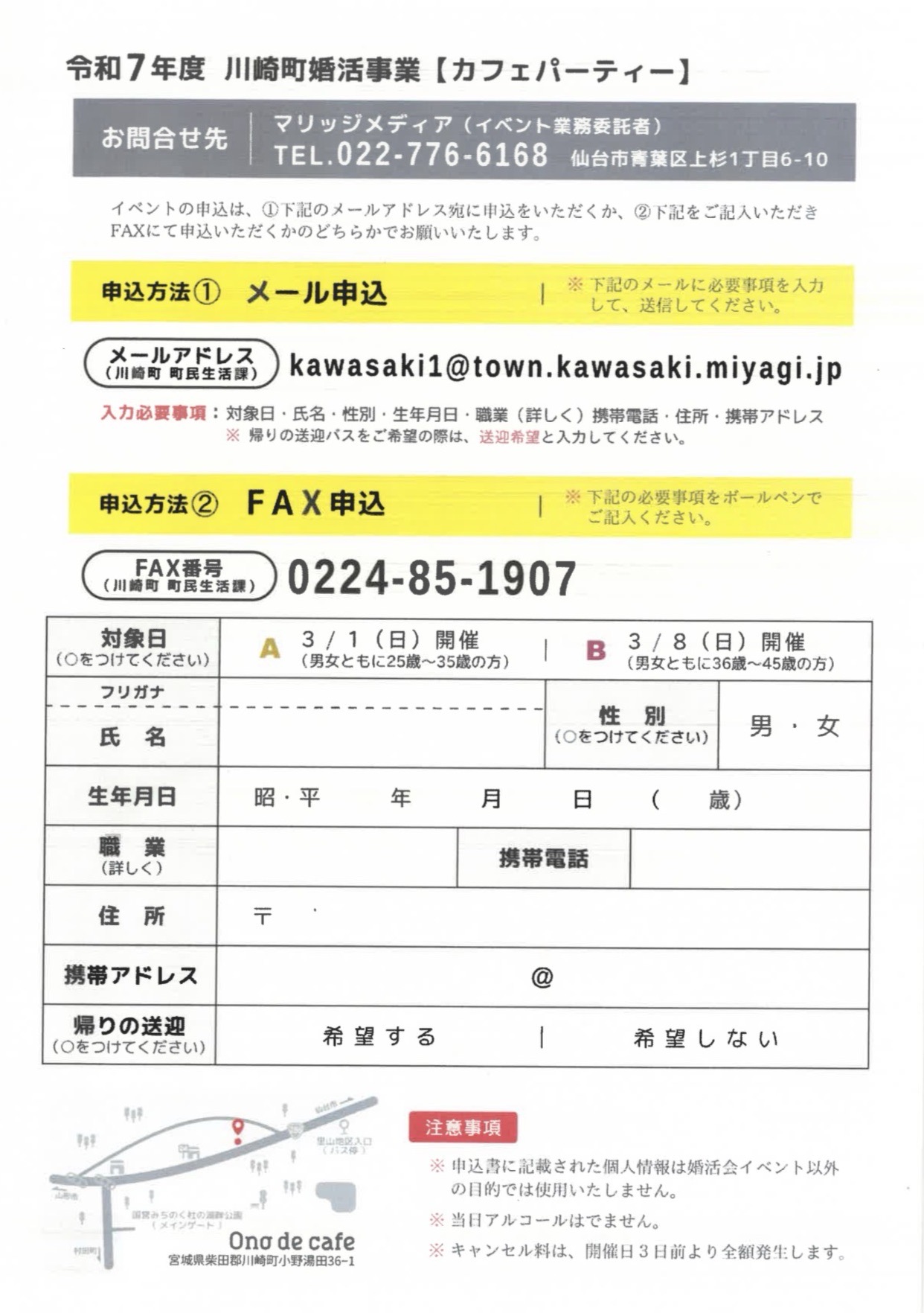 川崎町婚活事業 「KAWAKON♡カフェパーティー ㏌ Onode Cafe」開催いたします。