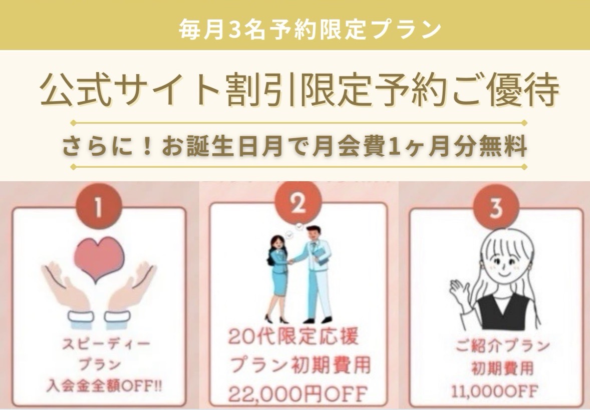 【マリッジメディア公式サイト毎月3名予約限定♡ご入会割引特典でお得に賢く婚活スタート】