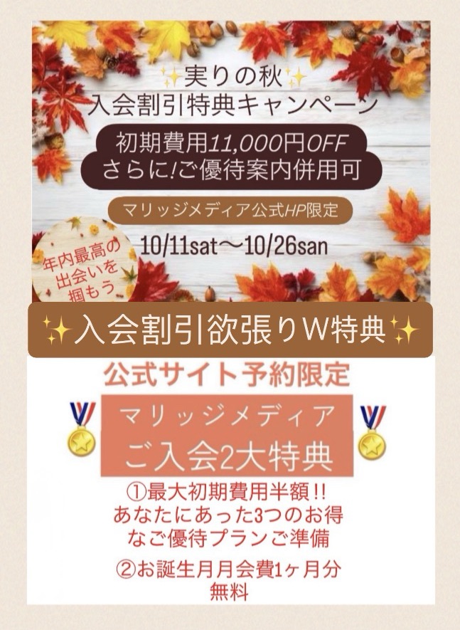 そんな思いを抱いているあなたへ、マリッジメディアから、特別な秋のキャンペーンをご案内いたします✨