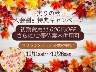 実りの秋、あなたの婚活にも大きな実りをもたらしてほしいという願いを込めて、この度、期間限定で初期費用から11,000円を割引させていただきます!