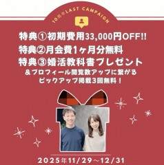 2025/11/29(土)~12/31(水)お得な特典を活用して婚活スタート!