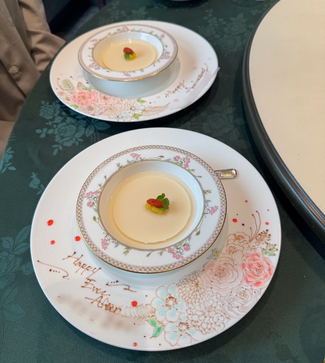 デザートプレートは、お花もすべて手描き、このまま残しておきたいくらいの素晴らしい画に感激しました。