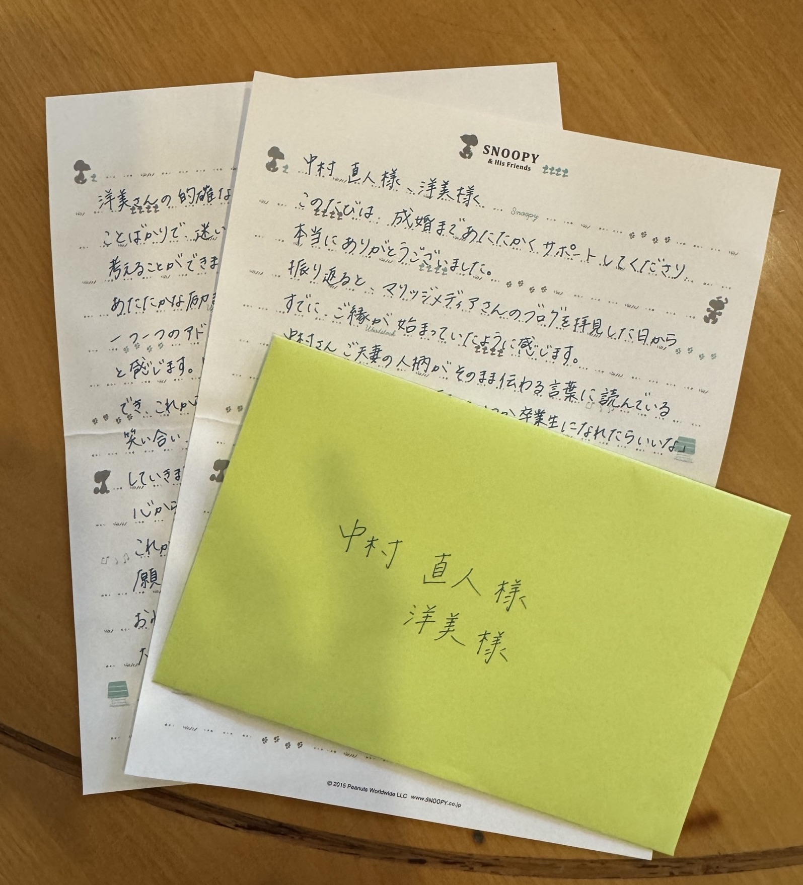 そこから5ヶ月後に、お二人がご成婚に結びつきましたこと、私たち夫婦、本当に嬉しく思っております。