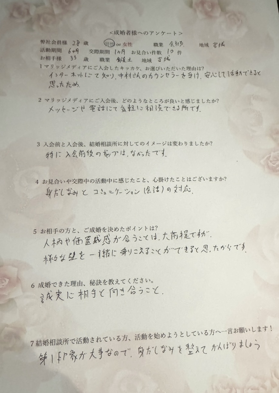 *弊社会員様:28歳男性会員様 職業:会社員 地域:宮城県