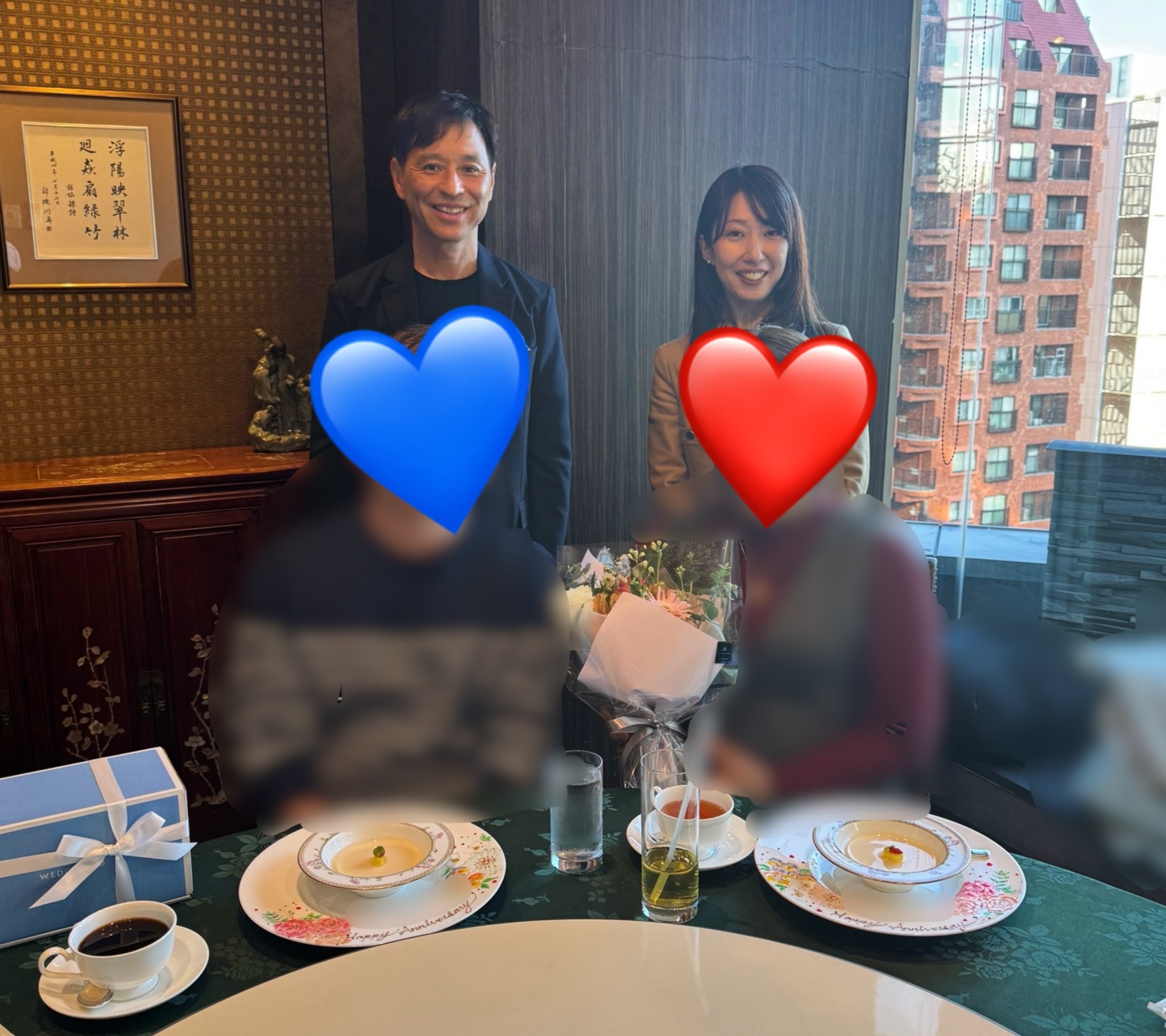30代後半同士のカップルがご成婚、男性会員様、お相手の女性会員様、私たち夫婦の4人でお祝いのお食事会をさせていただきました。