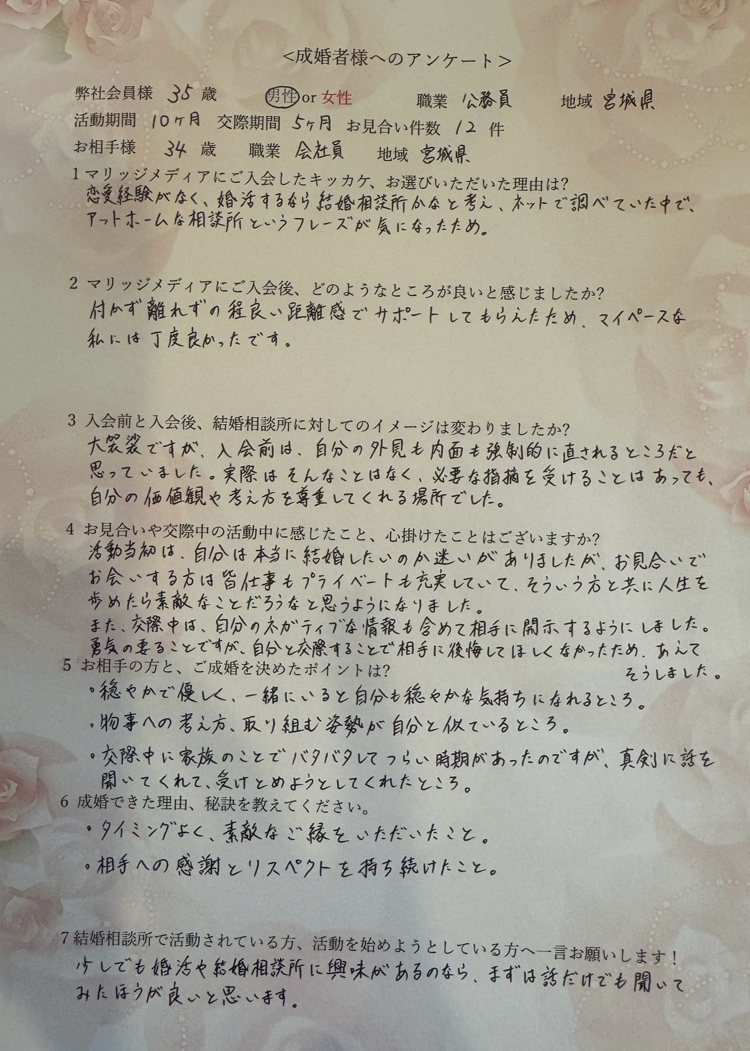 【ご成婚アンケート】