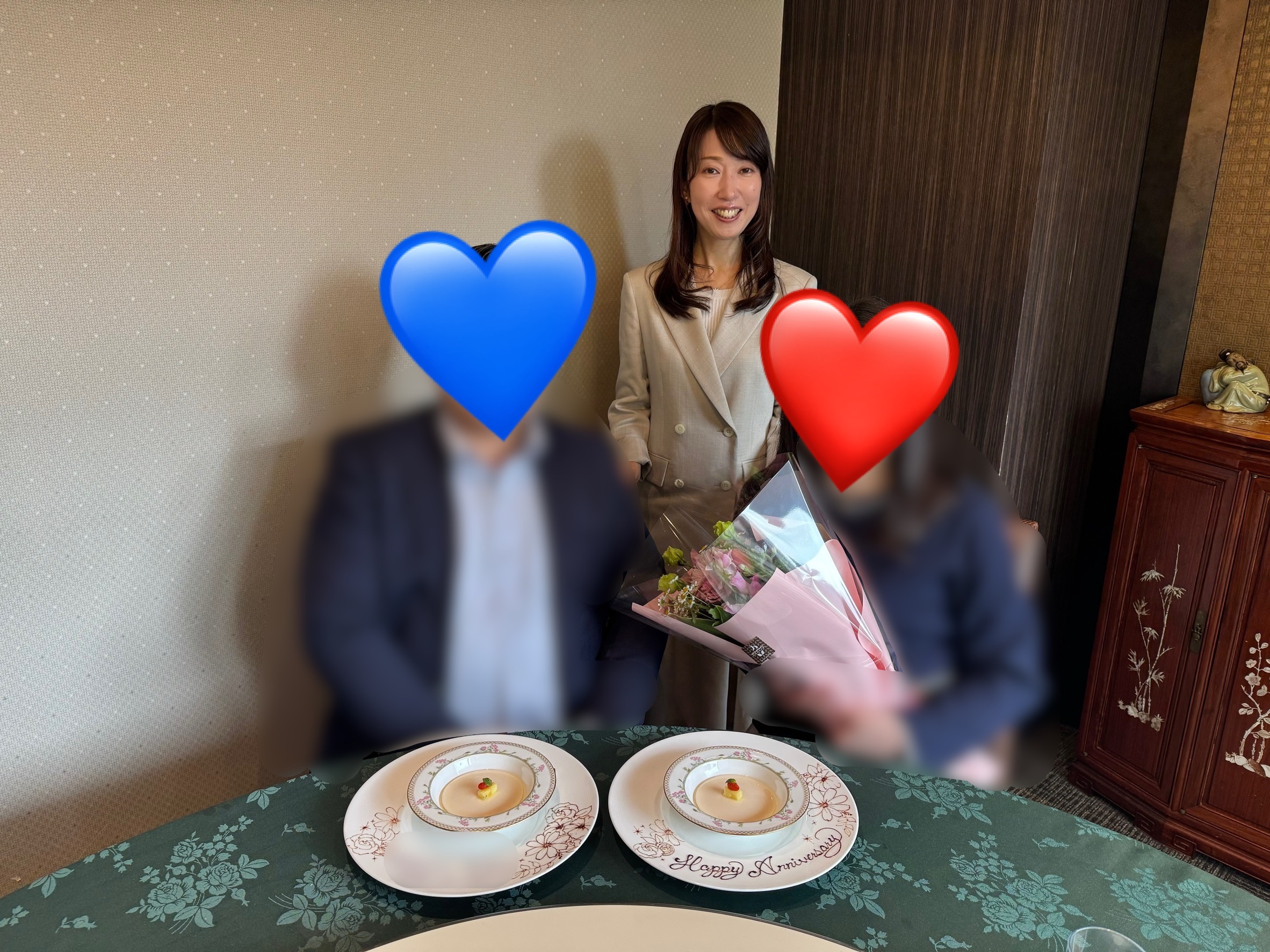 ご成婚されたお二人とお祝いのお食事会をさせていただき、とても楽しく、幸せなひと時をご一緒させていただきました。